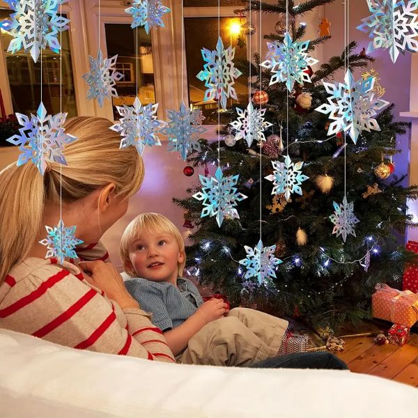 Die unverwechselbaren 3D-Weihnachtsschneeflocken zum Aufhängen bieten ein exquisites Erscheinungsbild, wenn sie in Fluren, Türöffnungen oder an anderen kreativen Orten, die du dir vorstellen kannst, von der Decke hängen.
