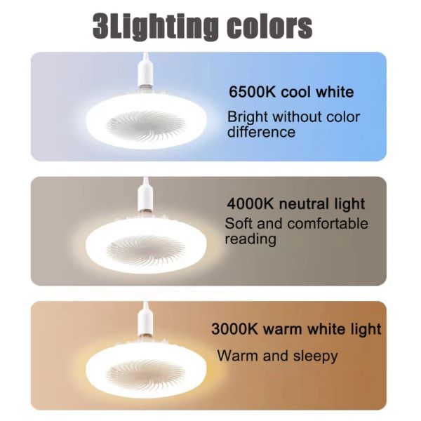 Dieser moderne Deckenventilator ist mit einer E27-Standard-Schraubfassung ausgestattet (nicht im Lieferumfang enthalten).