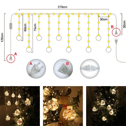 Lichter mit verschiedenen motiven können miteinander verbunden werden und eine 12m lange kette bilden, die nur von einer einzigen steckdose gespeist wird!