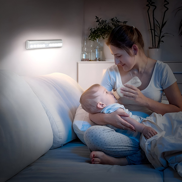 Nie wieder im Dunkeln stolpern! Bringen Sie dieses Licht in der Nähe des Fußendes Ihres Bettes an. Wenn Sie nachts aufwachen, leuchtet es automatisch auf und weist Ihnen den sicheren Weg zum Badezimmer oder zur Tür.
