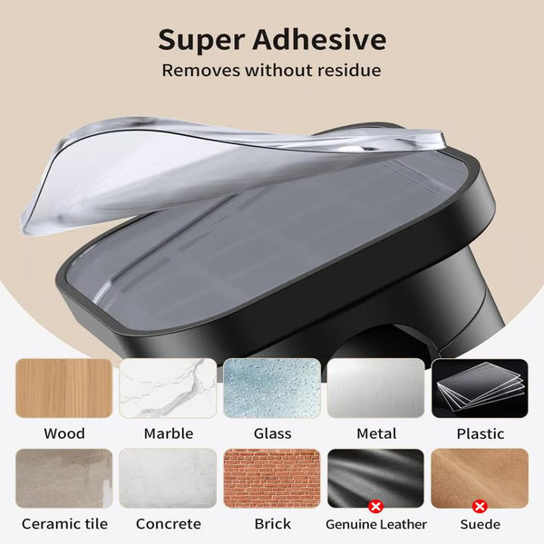 Haftet fest auf glatten Oberflächen wie Holz, Fliesen, Metall und Wänden.
