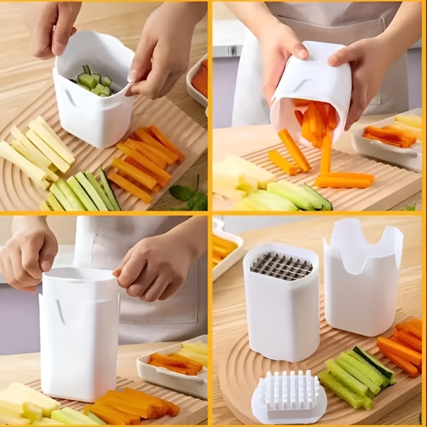 Das CHOPZY-Küchengerät ist nicht nur für Pommes frites geeignet; es ist ein vielseitiger Gemüseschneider, der verschiedene Zutaten wie Karotten, Gurken und Zwiebeln mühelos verarbeitet und die Essensvorbereitung erleichtert.