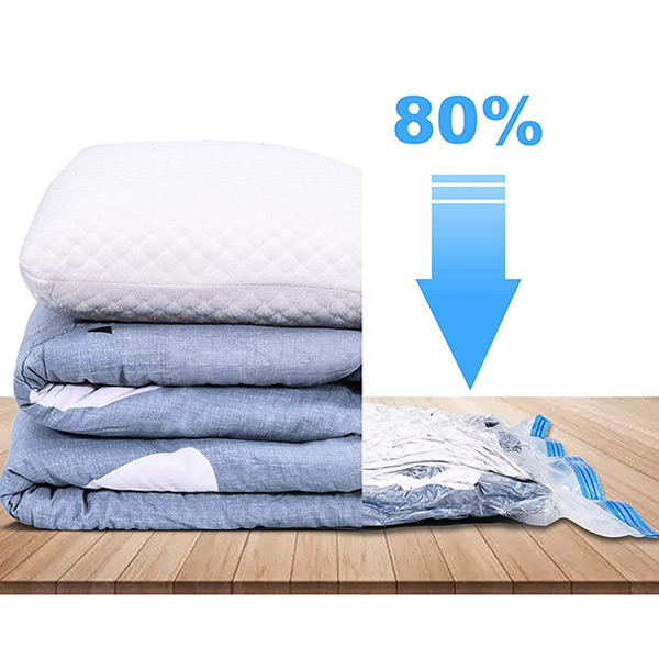 Geht Ihnen der Platz im Kleiderschrank aus? Haben Sie Schwierigkeiten, alles in Ihren Koffer zu bekommen? VACKBAGS Vakuumbeutel komprimieren Ihre sperrigen Gegenstände um bis zu 80% und schaffen sofort Platz für das Wichtige. Einfach Kleidung oder Bettwäsche einpacken, den Beutel verschließen und mit einem beliebigen Haushaltsstaubsauger die Luft entfernen – das dauert weniger als 60 Sekunden. Mehr Platz, weniger Unordnung, null Stress.