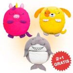 Ihr Kauf beinhaltet einen PILLOSACK mit der Tierfigur Ihrer Wahl:  Gelber Hund, rosa Einhorn, grauer Hai.