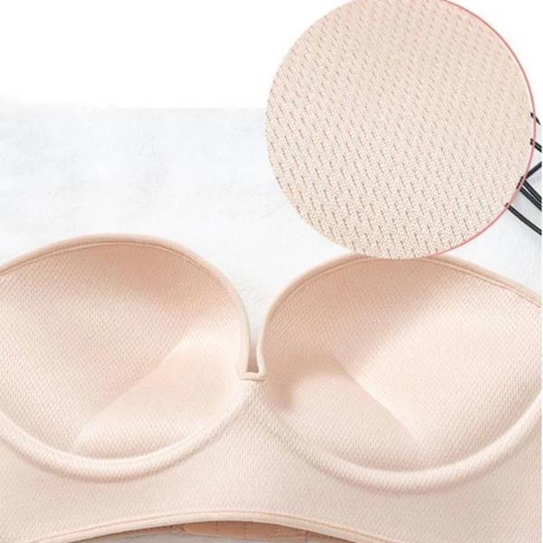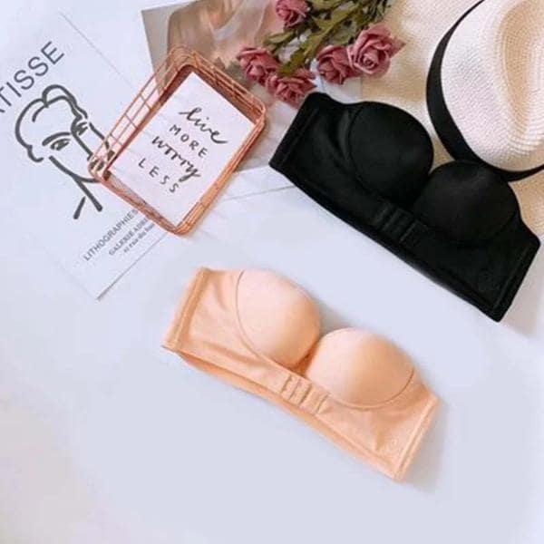 Ein völlig unauffälliger BH, der unter jedem Kleid oder jeder Bluse getragen werden kann! Lieferumfang: 1 x schwarzer und 1 x beiger trägerloser BH.